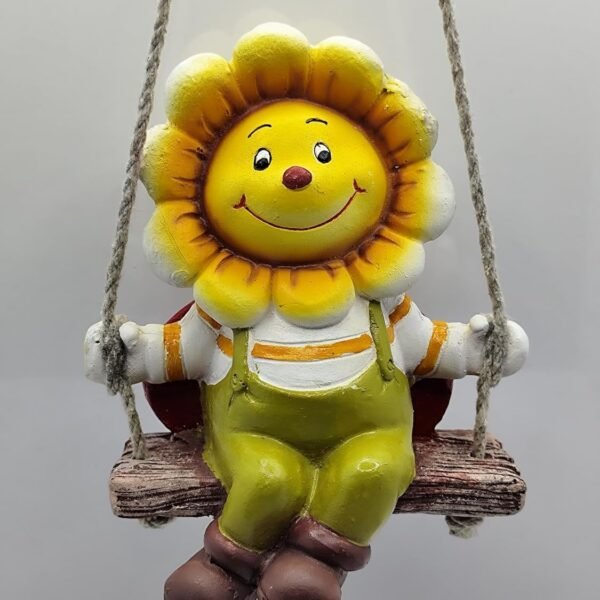 Whimsical Sunflower on a Swing Figurine – Happy Yellow Flower Garden Statue – Hanging Resin Patio, Porch & Home Decor Gift