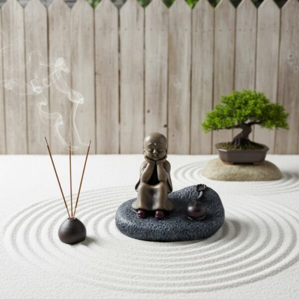 Serene Thinking Monk Statue – Cute Baby Buddha Figurine – Zen Contemplation Sculpture for Home Decor, Meditation, and Peace Gift