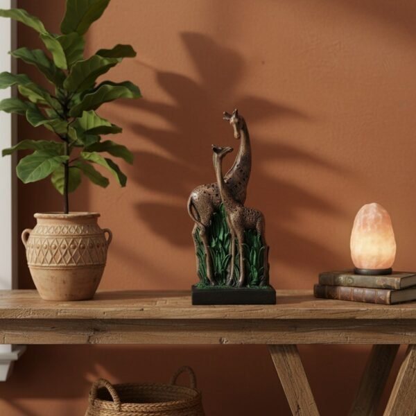 Elegant Giraffe Couple Statue – African Safari Love Figurine with Textured Design, Wildlife Resin Sculpture for Home, Mantel, or Anniversary Gift