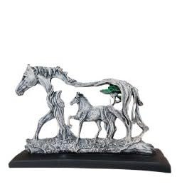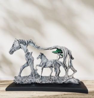 Mother & Foal Horse Statue – Rustic Driftwood Style Resin Sculpture – Modern Farmhouse Animal Figurine for Home Decor, Office Desk, or Equestrian Gift