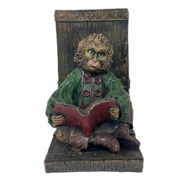 Monkey Reading Book Statue – Whimsical Scholar Figurine – Vintage Resin Sculpture for Library, Bookshelf Decor, Study or Office Desk Gift