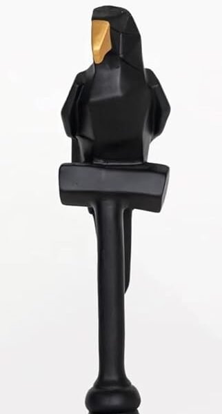 Modern Geometric Parrot Statue – Abstract Origami Style Black & Gold Figurine – Contemporary Resin Bird Sculpture for Home Decor or Office