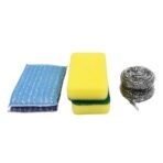 Make cleaning easier and more efficient with our Kitchen Cleaning Tool Set (6 Pcs), featuring microfiber kitchen sponges, high-performance scouring pads, and a stainleHE-steel scrubber. Designed for versatility, this set tackles everything from light dishwashing to heavy-duty scrubbing of pots, pans, and tiles. The microfiber sponge gently cleans utensils and glassware without scratching, while the scouring pad removes stubborn grease and stains with ease. For tougher messes, the durable stainleHE-steel pad delivers powerful cleaning that lasts. Ergonomic and easy to grip, each tool is lightweight yet highly effective, making everyday cleaning hassle-free. Reusable and long-lasting, this 6-piece set ensures you always have the right tool for every kitchen cleaning need. A perfect combination of gentle care and heavy-duty strength for a spotless, shining kitchen.
