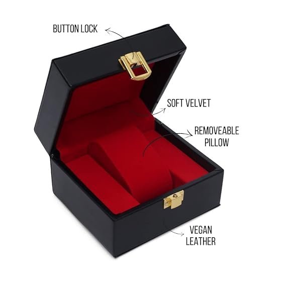 Showcase and protect your favorite timepiece with this luxury watch box for men, crafted with a premium black faux leather exterior and a rich red velvet interior. Designed for elegance and function, this single watch display case is perfect for safe storage, travel, or gifting. The soft velvet cushion cradles your watch to prevent scratches and maintain its shape, while the gold-tone metal lock ensures secure closure. Its compact size makes it a travel-friendly watch organizer, ideal for carrying your favorite watch wherever you go. Whether you’re gifting for birthdays, anniversaries, Father?s Day, or special occasions, this watch gift box adds a premium touch to any presentation. Suitable for luxury watches, smartwatches, and classic timepieces.